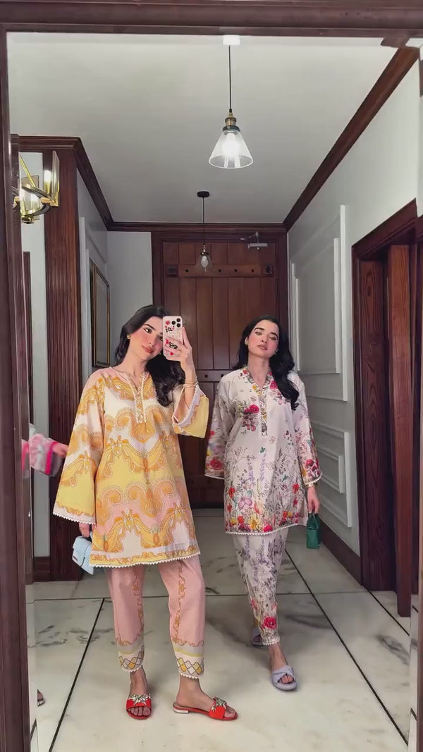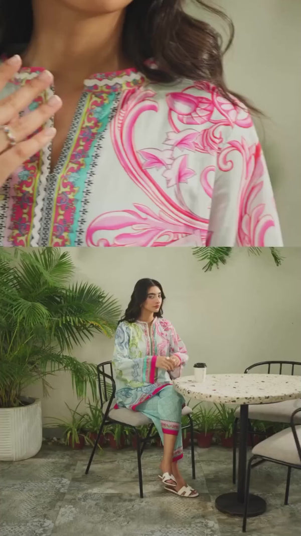 Step into effortless elegance with the Nisya Co-ord Set, a captivating fusion of contemporary design and refreshing tones. Tailored in luxurious Swiss Cotton, the kurta showcases a delightful medley of pastel blue, pink, and green hues adorned with intricate baroque-style motifs. The bright contrast borders add a touch of vibrance, while the aqua-patterned trousers complete the look with refined ease. Perfect for brunches, getaways, or casual gatherings, this ensemble embodies comfort with a modern chic flair.