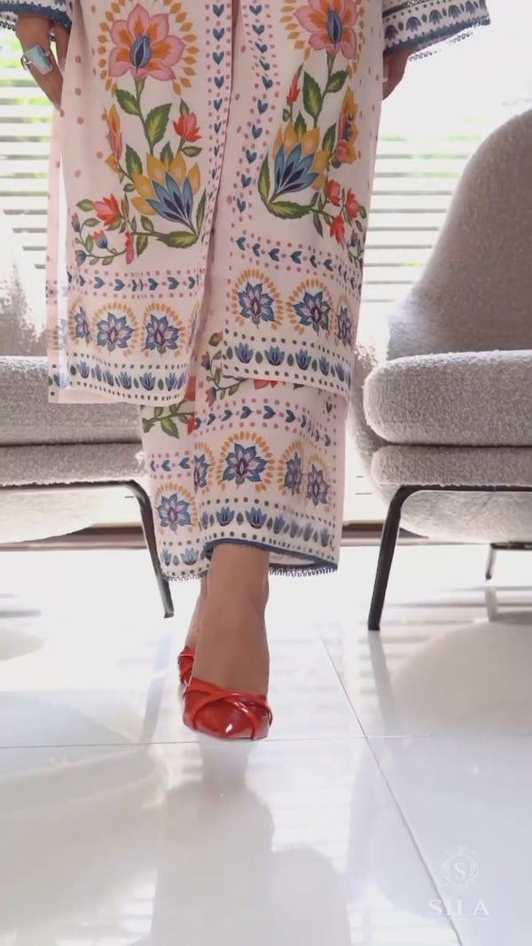 Crafted in premium fabric with vibrant digital floral prints, this elegant co-ord set radiates freshness and charm. Featuring a flowy kurta with tie-neck detailing and matching trouse, it’s perfect for brunches, festive gatherings, and chic day outings.